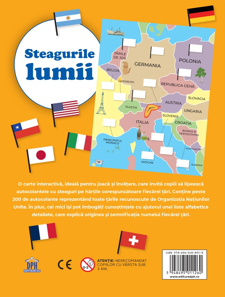 „Steagurile lumii” este o carte interactivă care îi ajută pe copii să învețe țările și steagurile lor printr-o activitate practică și plăcută.