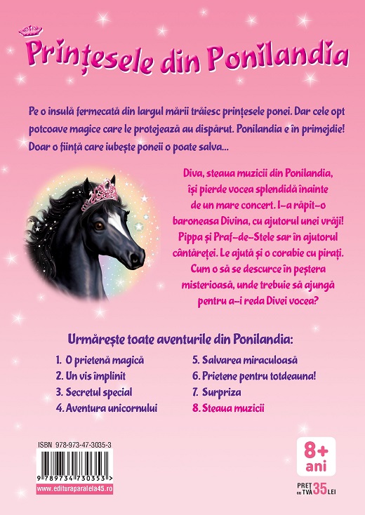 Diva, steaua muzicii din Ponilandia, își pierde vocea splendidă înainte de un mare concert. I-a răpit-o baroneasa Divina, cu ajutorul unei vrăji! Pippa și Praf-de-Stele sar în ajutorul cântăreței. Le ajută și o corabie cu pirați. Cum o să se descurce în peștera misterioasă, unde trebuie să ajungă pentru a-i reda Divei vocea?