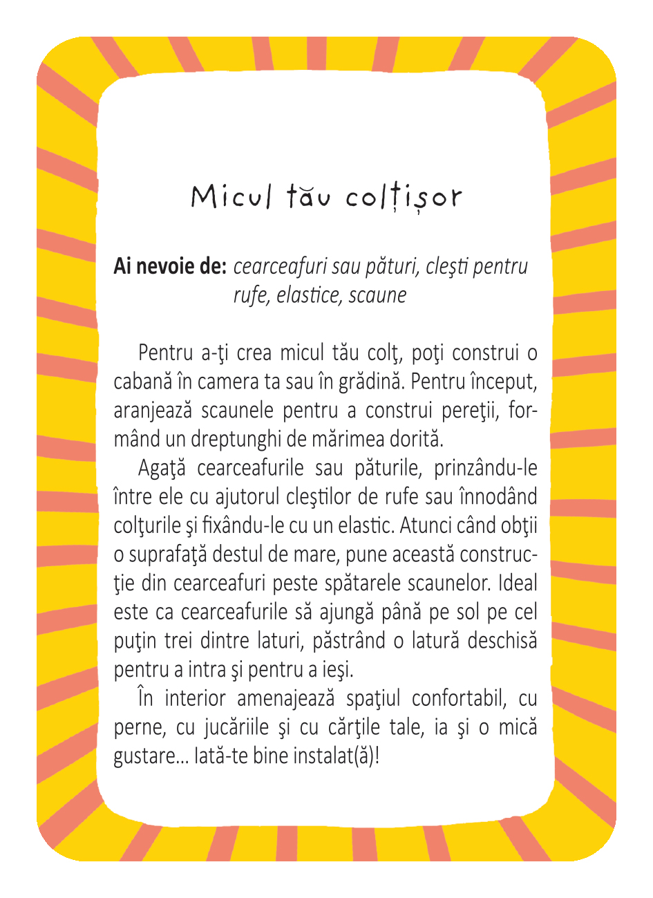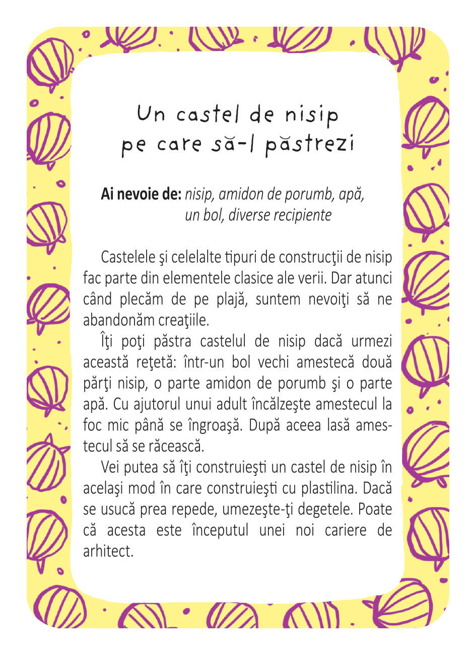 52 de activitati pentru vacanta de vara ofera activitati creative, distractive si educative, recomandate tuturor copiilor cu varsta peste 5 ani.