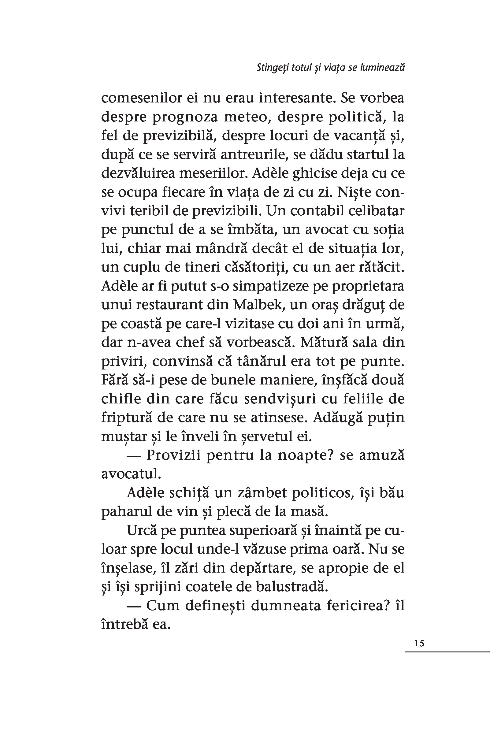 Pe puntea vasului care o poartă spre un sat îndepărtat, la înmormântarea fostului ei iubit, Adèle, o femeie matură, care se ocupă de orologii vechi, îl cunoaște pe Jeremy, un bărbat mai tânăr decât ea, care visează să devină cântăreț de jazz. „Cum definești fericirea?“ îl întreabă ea. Așa începe dialogul lor despre iubire, timp, vârstă…