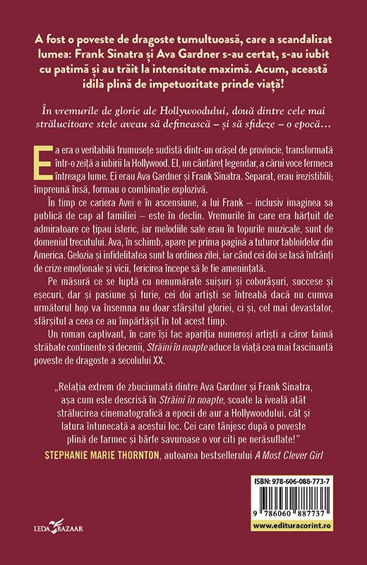 Un roman captivant, o ficțiune istorică despre celebrități, în care își fac apariția numeroși artiști a căror faimă străbate continente și decenii, Străini în noapte aduce la viață cea mai fascinantă poveste de dragoste a secolului XX.