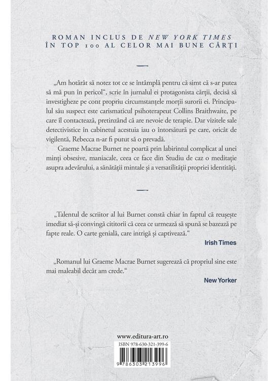 Graeme Macrae Burnet ne poartă prin labirintul complicat al unei minți obsesive, maniacale, ceea ce face din „Studiu de caz” o meditație asupra adevărului, a sănătății mintale și a versatilității propriei identități.