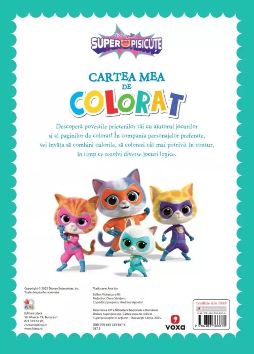 În compania personajelor preferate, vei învăța să combini culorile, să colorezi cât mai potrivit în contur, în timp ce rezolvi diverse jocuri logice.
