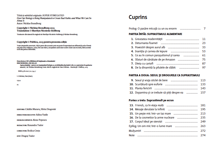 În această carte, Nicklas Brendborg dezvăluie modul în care viața modernă ne sabotează biologia străveche, creând medii care ne exploatează instinctele și care ne pregătesc pentru obiceiuri nesănătoase. Ca om de știință, am găsit cartea atât revelatoare, cât și motivantă. Este un apel la conștientizare și oferă un set de instrumente care să ne ajute să ne revendicăm libertatea de acțiune într-o lume care profită de pe urma suprastimulării noastre. — Dr. Jenna Macciochi