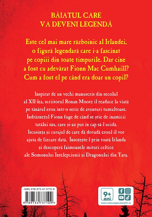 Inspirat de un vechi manuscris din secolul al XII-lea, scriitorul Ronan Moore îl readuce la viață pe tânărul erou într-o serie de aventuri tumultoase. Îndrăznețul Fionn fuge de când se știe de inamicii tatălui său, care și-au pus în cap să-l ucidă. Iscusința și curajul de care dă dovadă eroul îl vor ajuta de fiecare dată. Însoțește-l prin toată Irlanda și descoperă faimoasele mituri celtice ale Somonului Înțelepciunii și Dragonului din Tara.