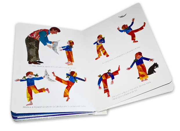 Una dintre cele mai frumoase cărţi de Eric Carle, cu pagini pliate, care se desfac spectaculos în sus, în jos sau în lateral, „Tati, te rog, adu-mi luna de pe cer” este o poveste despre imaginaţie şi puterea dragostei părinților pentru copii.