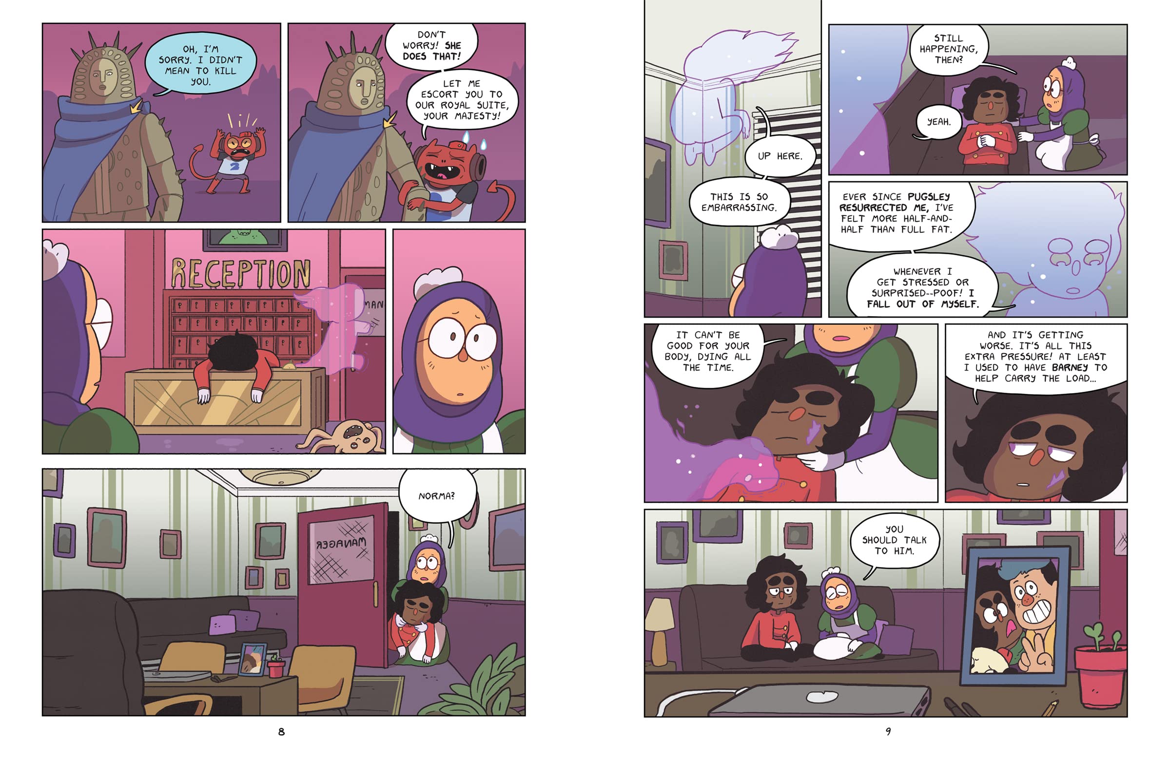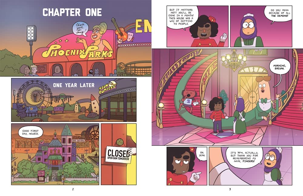 Norma Khan has been split in two . . . literally! Dead End, the haunted hotel attraction at Phoenix Parks, has been rebuilt following the epic destruction that occurred there when Norma and her friends Barney and Pugsley saved the world. Unfortunately, Norma can’t keep herself together as a result. Not only is her friendship with Barney on the rocks, but she can’t seem to keep her own ghost inside her body. When Norma feels like she’s about to lose it all, her irksome friend and demon, Courtney, steps in to provide some unexpected support—though they are battling their own issues with identity and sense of belonging.