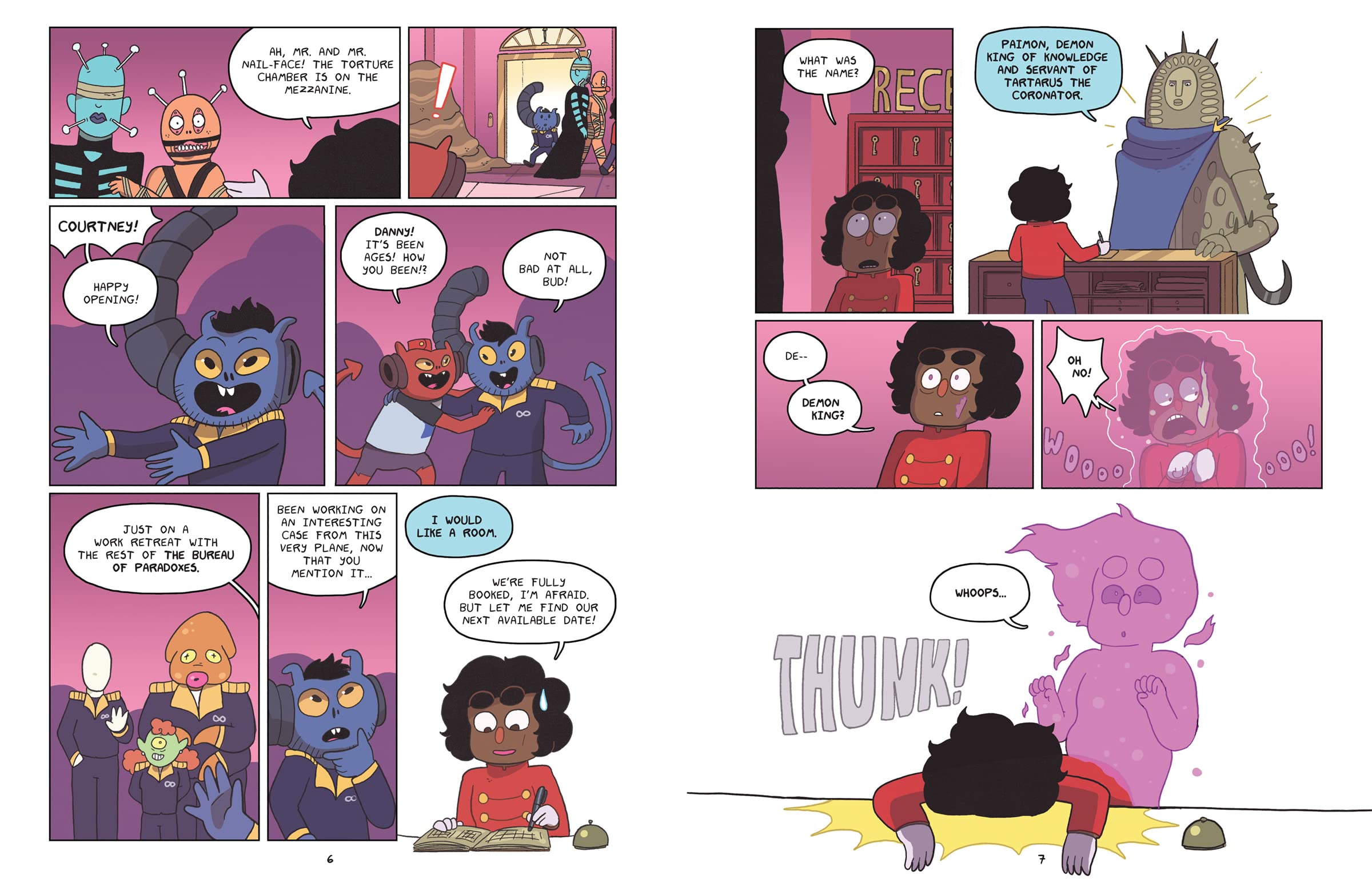 Part workplace comedy, part supernatural horror adventure, with a splash of LGBTQ+ romance, The Broken Halo is perfect for fans of author Hamish Steele’s TV series Dead End: Paranormal Park who are in search of more adventures, for graphic novel lovers who want more diversity in their reads, or for anyone who has finished The Watcher’s Test and is ready for the next entry in the zany, creative, and laugh-out-loud funny world of DeadEndia.