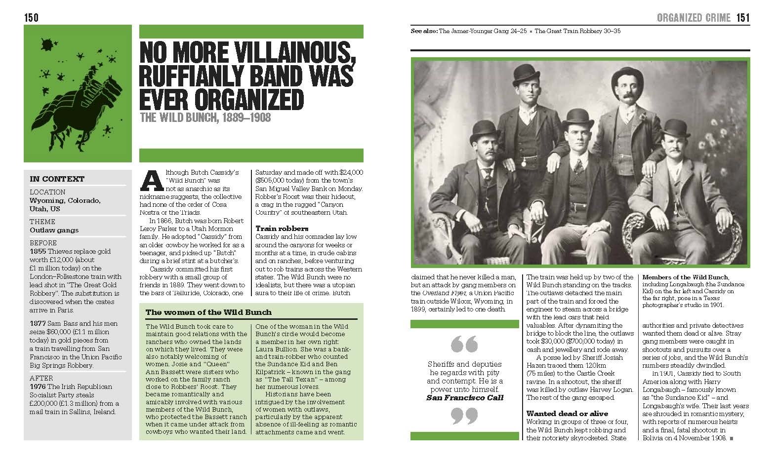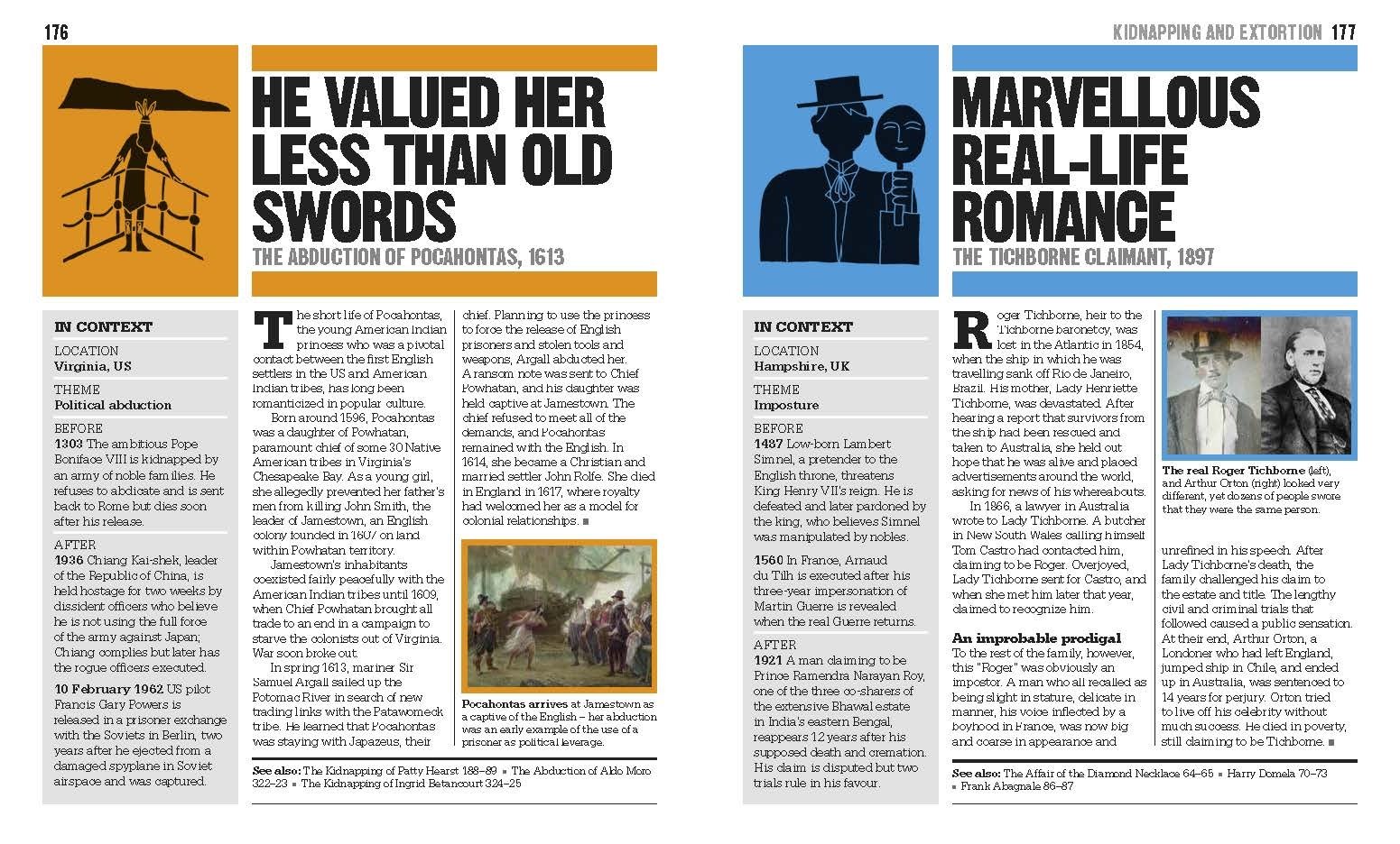 The Crime Book looks at the big ideas and concepts in criminology spanning from pirates, kidnapping and political plots to modern con artists, serial killers and rogue traders, including the Black Dahlia investigation, the Mississippi Scheme, and the notorious Jeffrey Dahmer.