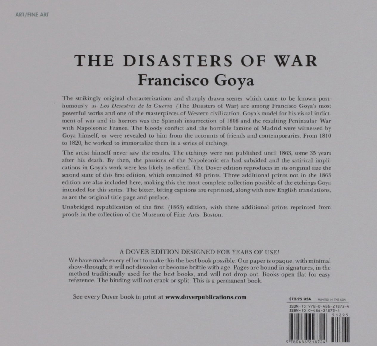 Visual indictment of war's horrors, modeled after Spanish insurrection (1808), the resultant Peninsular War and following famine. Miseries of war graphically demonstrated in 83 prints; includes veiled attacks on various people, the Church, and the State. Captions reprinted with new English translations plus the original title page and preface.