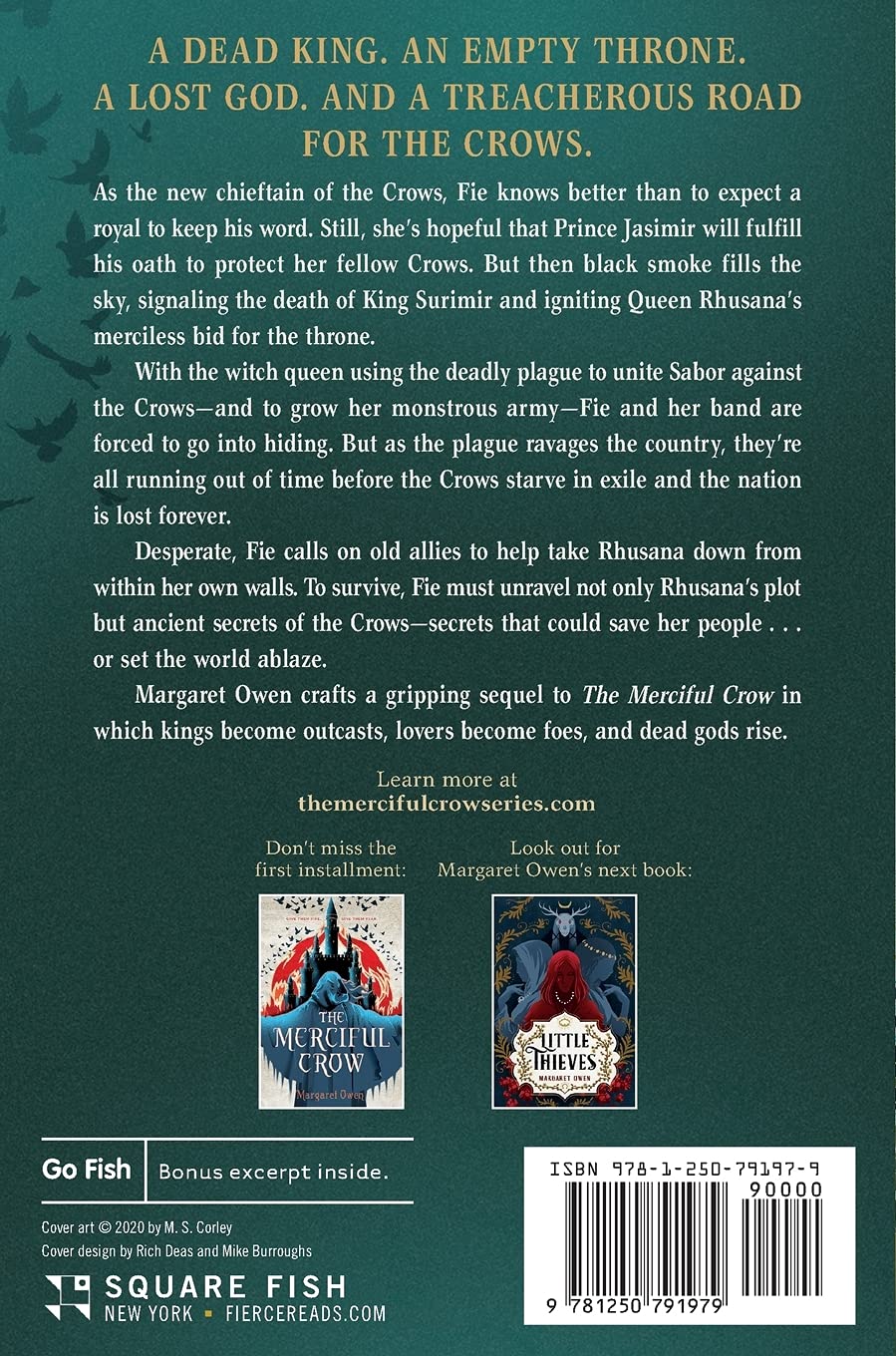 Kings become outcasts and lovers become foes in The Faithless Hawk, the thrilling sequel to Margaret Owen's The Merciful Crow. As the new chieftain of the Crows, Fie knows better than to expect a royal to keep his word. Still she's hopeful that Prince Jasimir will fulfill his oath to protect her fellow Crows. But then black smoke fills the sky, signaling the death of King Surimir and the beginning of Queen Rhusana's merciless bid for the throne. With the witch queen using the deadly plague to unite the nation of Sabor against Crows--and add numbers to her monstrous army--Fie and her band are forced to go into hiding, leaving the country to be ravaged by the plague. However, they're all running out of time before the Crows starve in exile and Sabor is lost forever. A desperate Fie calls on old allies to help take Rhusana down from within her own walls. But inside the royal palace, the only difference between a conqueror and a thief is an army. To survive, Fie must unravel not only Rhusana's plot, but ancient secrets of the Crows--secrets that could save her people, or set the world ablaze.