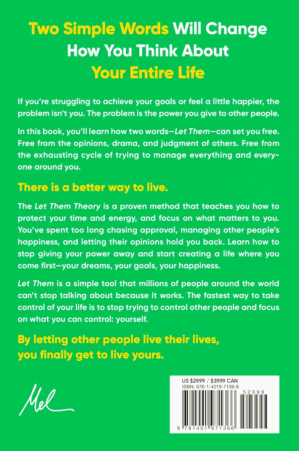 If you've ever felt stuck, overwhelmed, or frustrated with where you are, the problem isn't you. The problem is the power you give to other people. Two simple words-Let Them-will set you free. Free from the opinions, drama, and judgments of others. Free from the exhausting cycle of trying to manage everything and everyone around you. The Let Them Theory puts the power to create a life you love back in your hands-and this book will show you exactly how to do it.