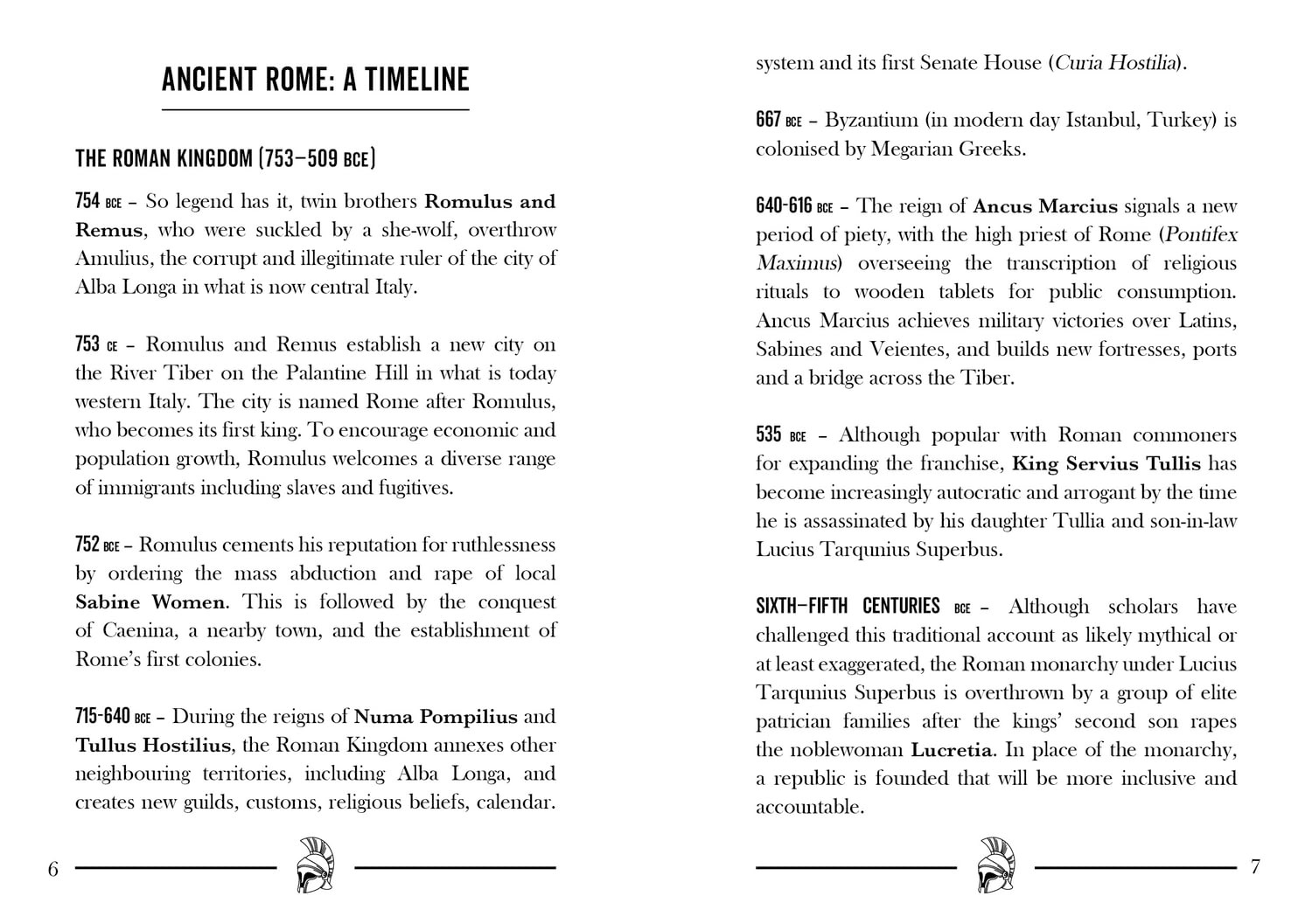 - A whistle-stop tour of the Ancient Roman timeline, from the founding of Rome to the fall of the Roman Empire.