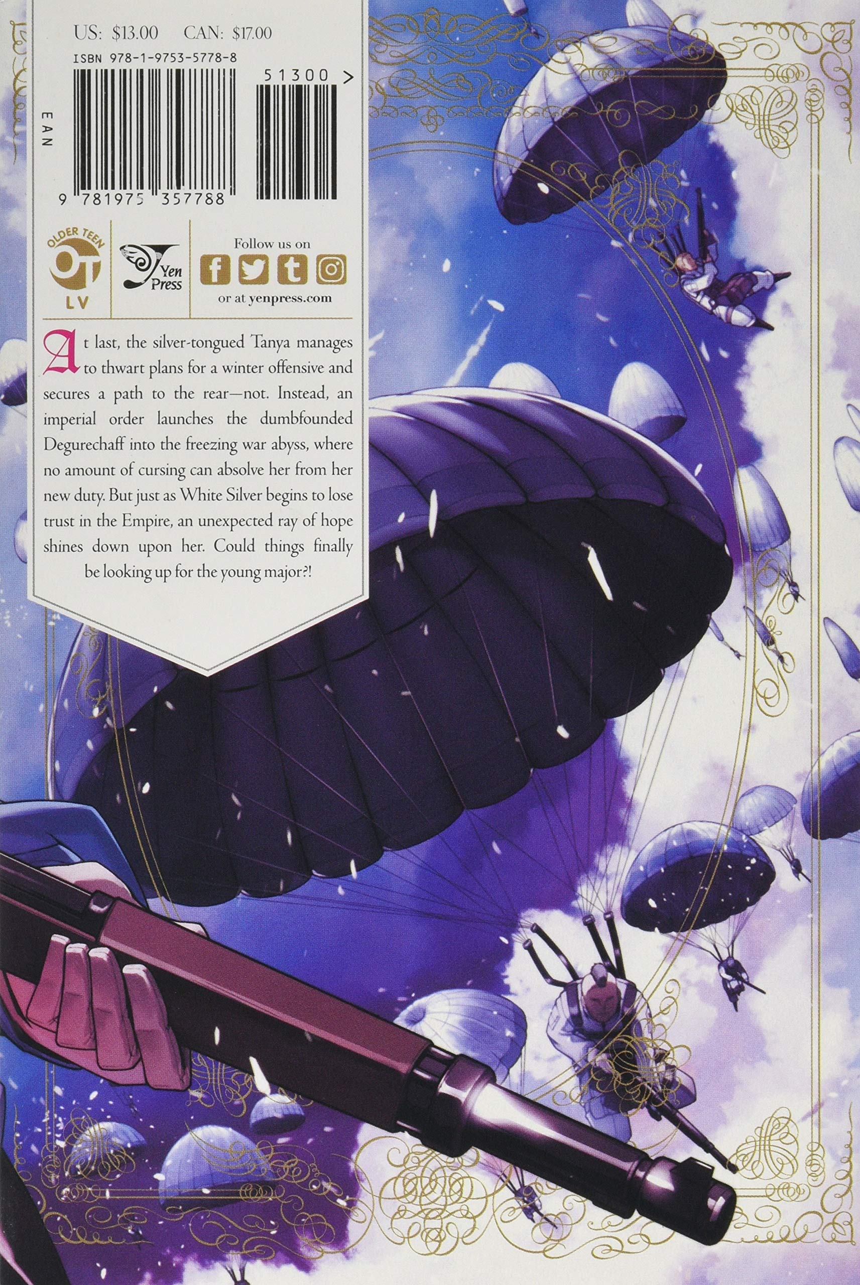 With undeniable wit and charisma, Tanya manages to charm her way into the warmth of the office...not. When an order for a military march launches the dumbfounded Degurechaff into the freezing depths of winter, fluffy pillows and five course meals are the last thing on her mind...That is, until the Major discovers another tempting course of action...