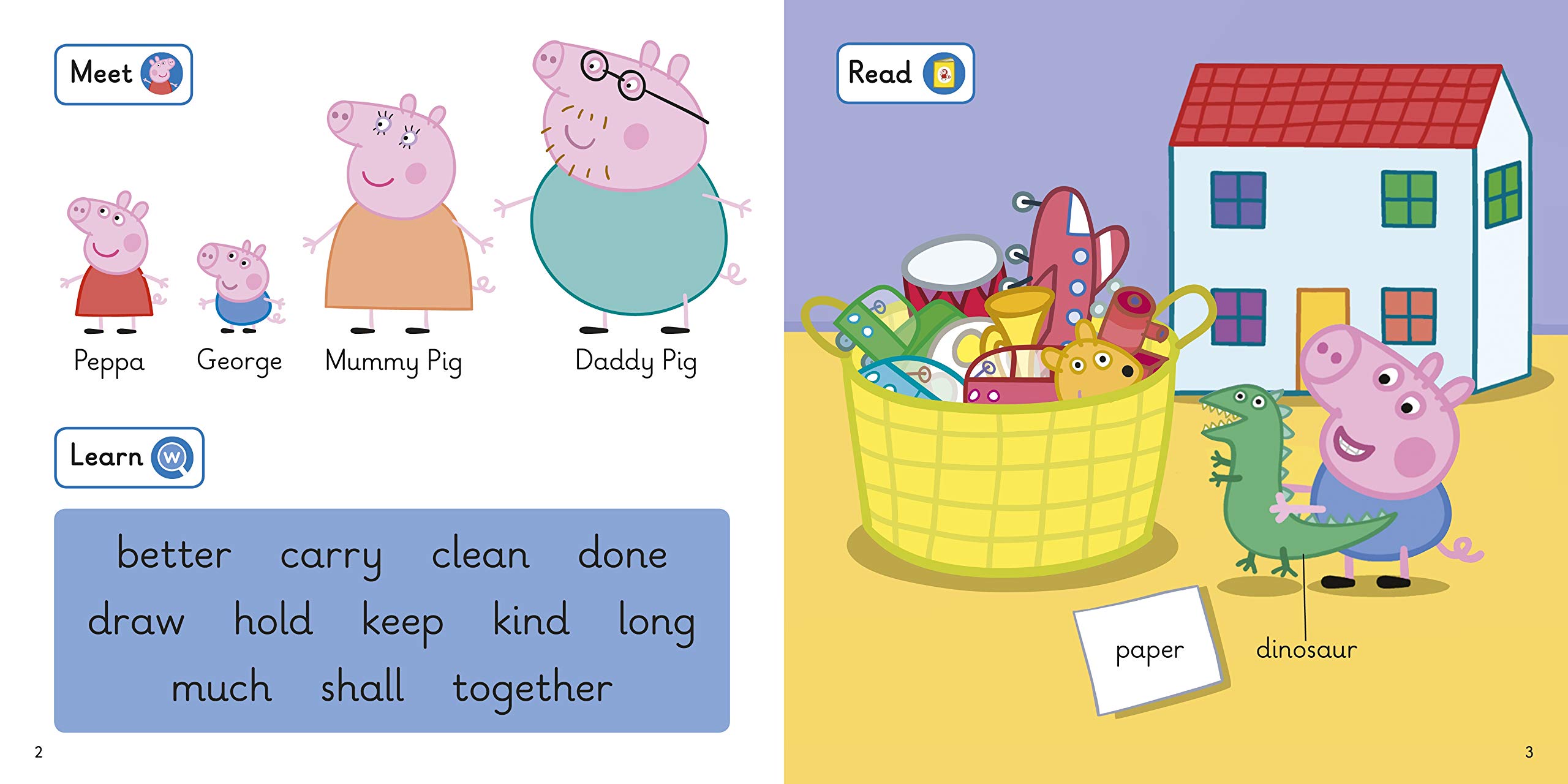 Each Storybook features a story from the well-loved Peppa Pig TV episodes, retold to introduce around ten Sight Words. These words are repeated regularly throughout the story. It is through this repetition that children become familiar with the words and begin to recognise them.