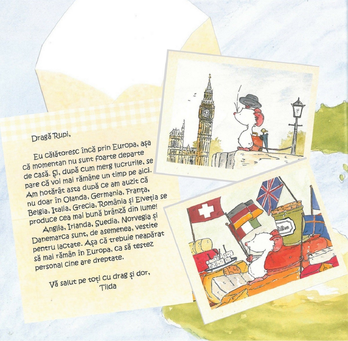 În timpul călătoriei sale în jurul lumii, Tilda descoperă multe minunății. Ea ajunge în locurile în care se găsește cea mai bună brânză. În plus, ea află cât de mult plouă în pădurea tropicală și dacă în Japonia există sau nu șoricei. Pe parcursul călătoriei, Tilda își face mulți prieteni în Africa, în India și în Australia.
