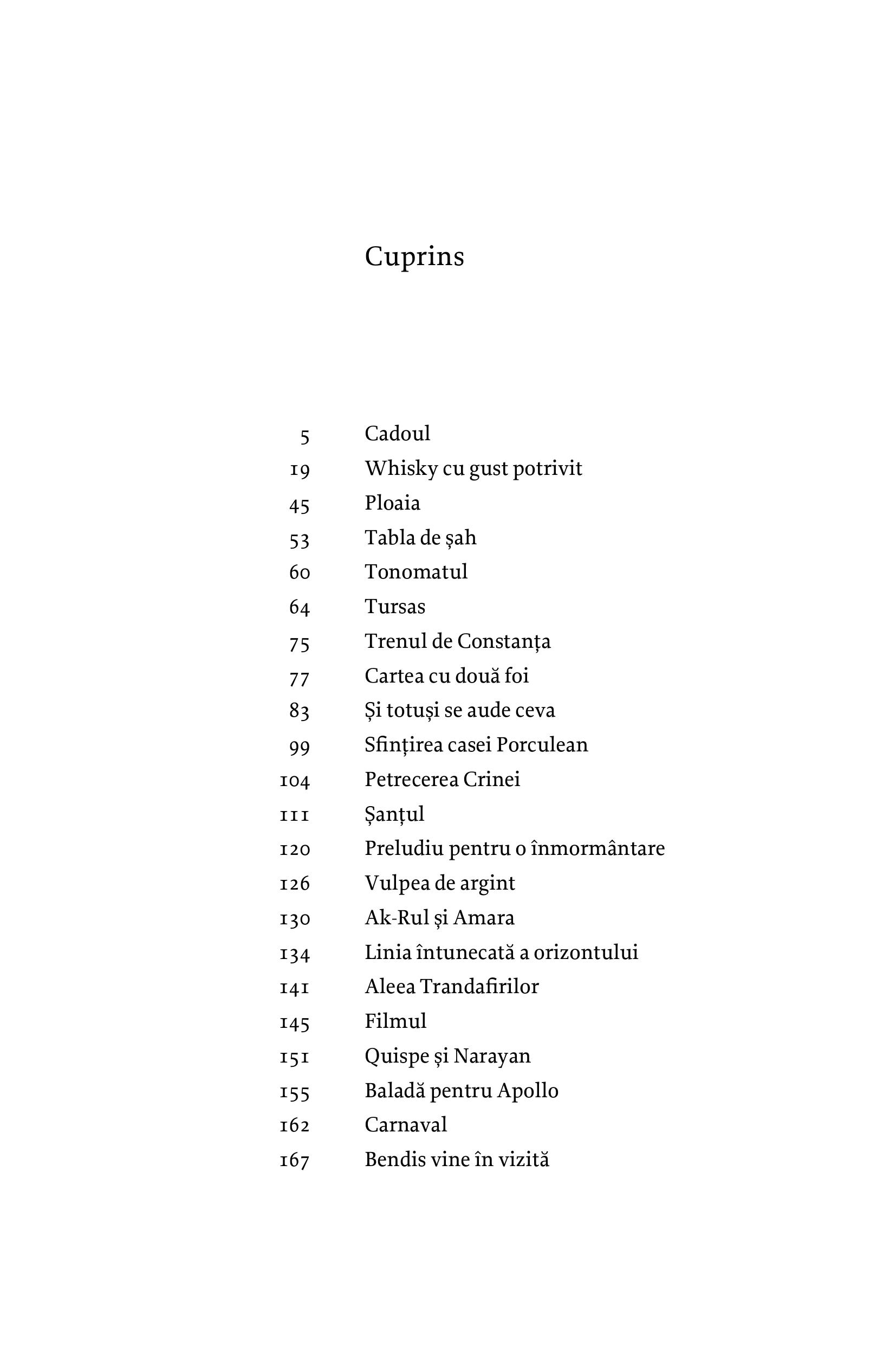 „Am încercat să tratez mai multe teme care m-au obsedat întotdeauna – singurătatea, nevoia de perfecțiune, dorința de a avea succes, cinismul, gelozia. Am abordat povestirile din perspectivă fantastică, pentru că e registrul de care mă simt cel mai apropiat, şi pe care îl şi stăpânesc cel mai bine. Cu ajutorul fantasticului, am vrut să arunc o lumină nouă asupra acestor teme.“ – ANDREI PANȚU