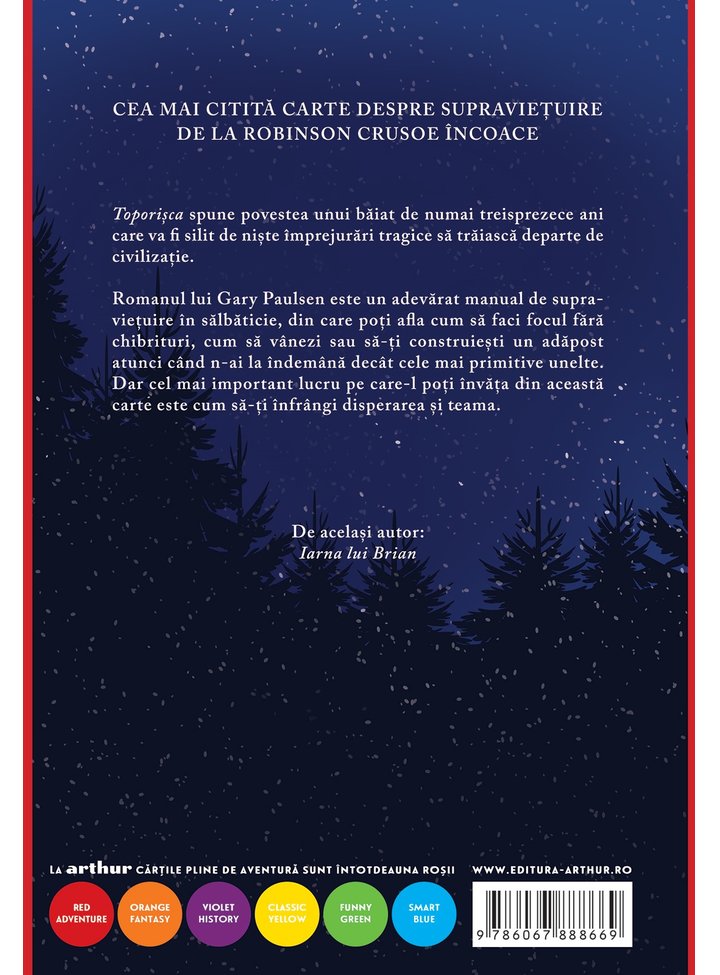 Romanul lui Gary Paulsen este un adevărat manual de supraviețuire în sălbăticie, din care poți afla cum să faci focul fără chibrituri, cum să vânezi sau să-ți construiești un adăpost atunci când n-ai la îndemână decât cele mai primitive unelte. Dar cel mai important lucru pe care-l poți învăța din această carte este cum să-ți înfrângi disperarea și teama.