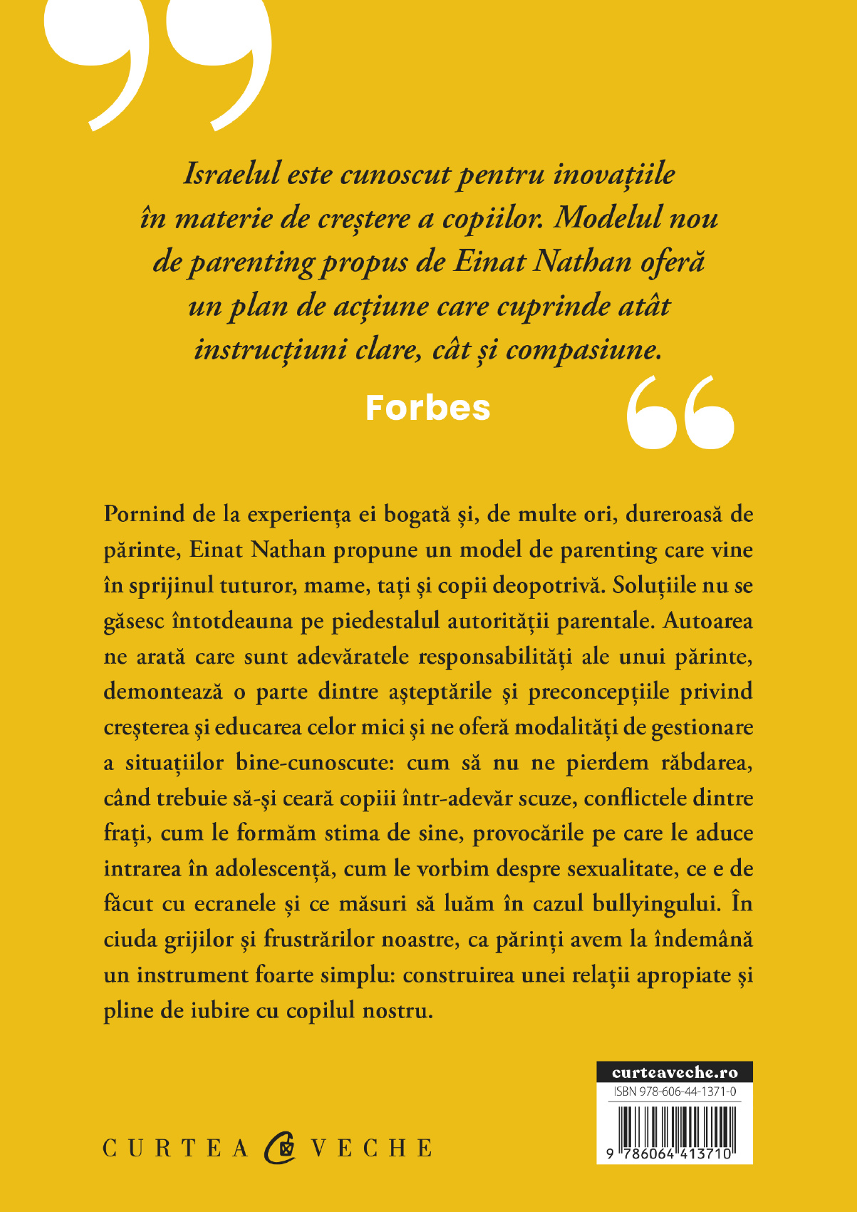 Pornind de la experiența ei bogată și, de multe ori, dureroasă de părinte, Einat Nathan propune un model de parenting care vine în sprijinul tuturor, mame, tați și copii deopotrivă.