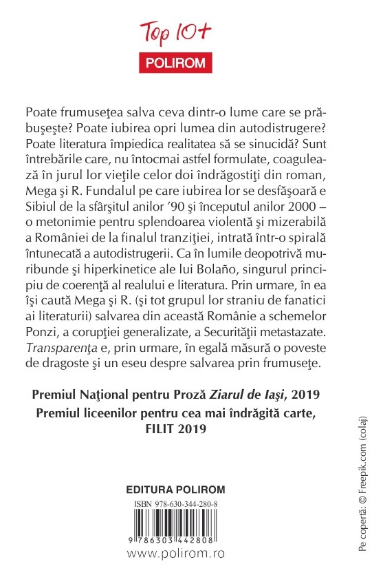 Transparenţa e, prin urmare, în egală măsură o poveste de dragoste şi un eseu despre salvarea prin frumuseţe.