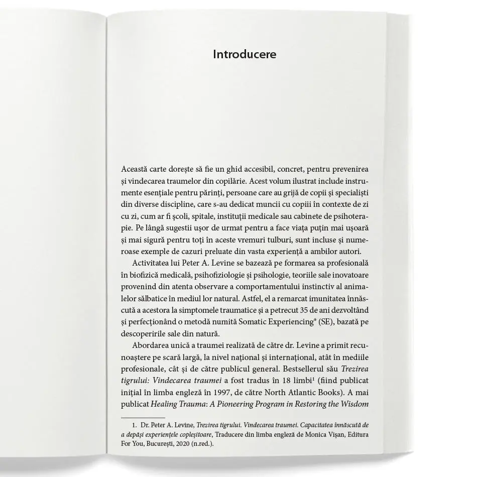 Lucrarea de față prezintă informații folosindu-se de ilustrări de caz ale unor întâmplări traumatice care fac parte din viața de zi cu zi. Pe lângă exemple de caz, autorii au conceput și exerciții care să ofere cititorilor și copiilor acestora experimentarea directă a conceptelor discutate. Atunci când adulții înțeleg mecanismul prin care se poate ieși din starea de șoc, frică și constrângere, este ușor să-i ghideze apoi pe copii.