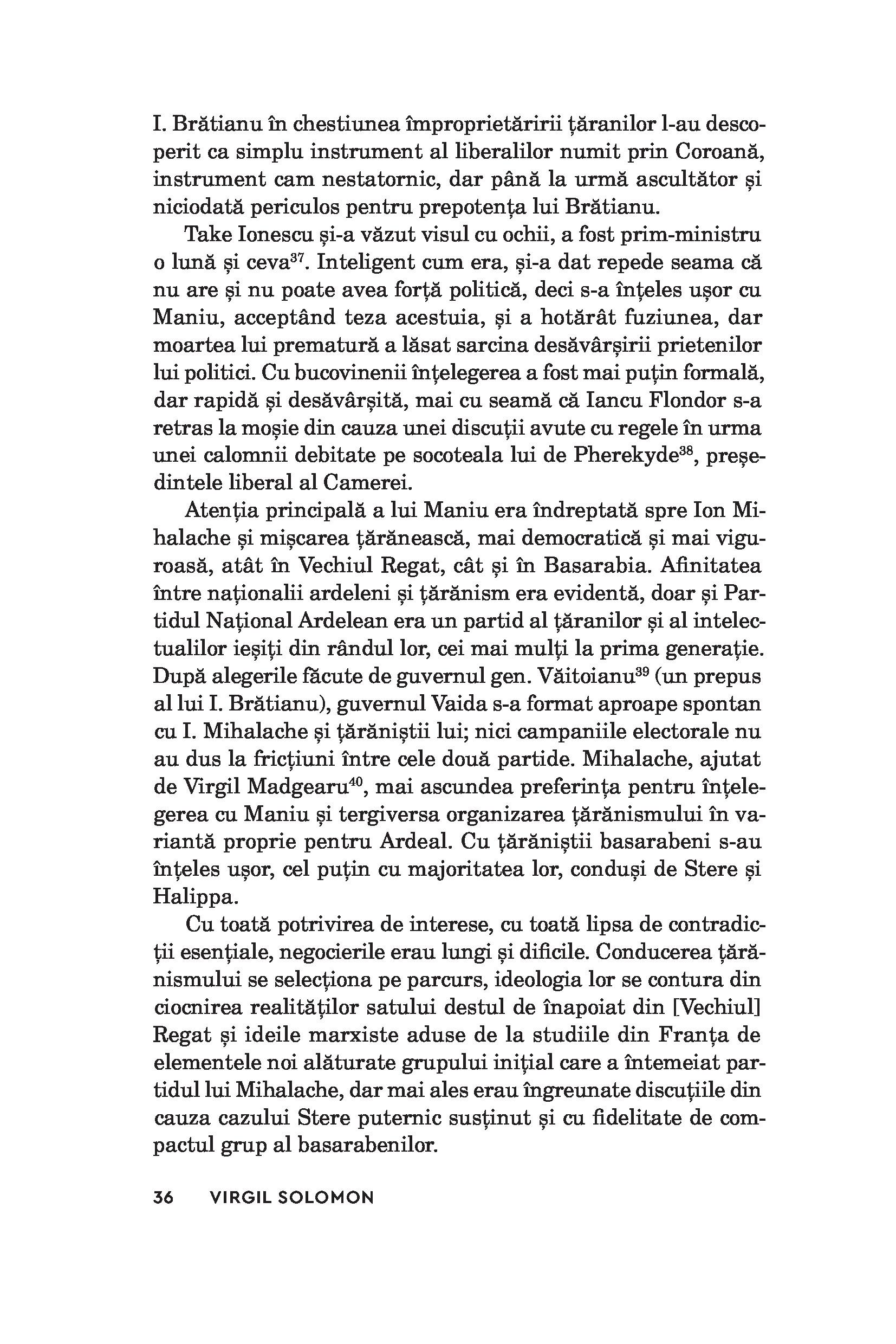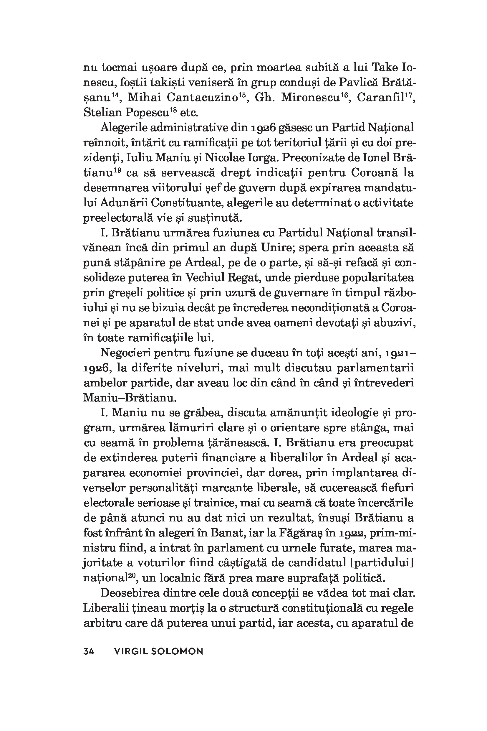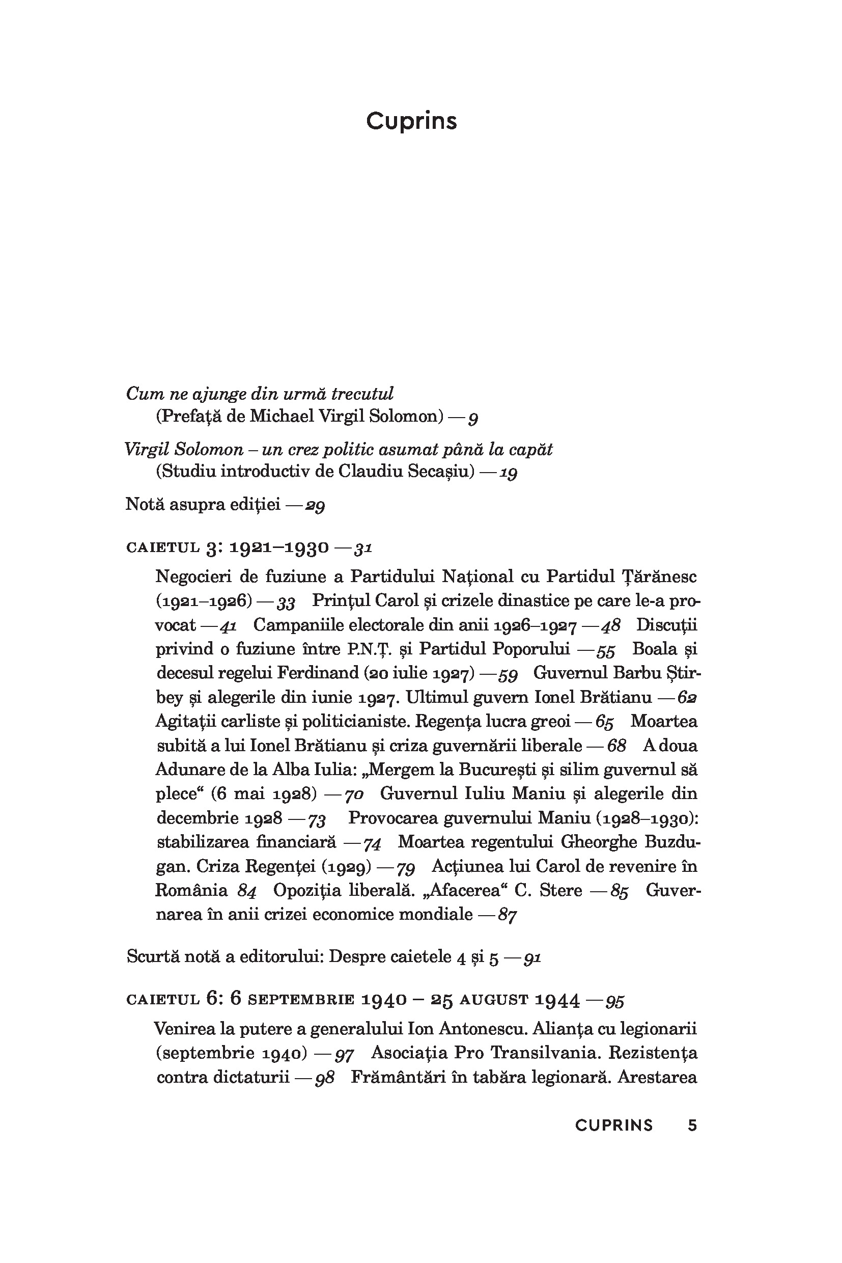 „Medicul Virgil Solomon a fost martorul privilegiat al unor mari evenimente istorice. În memoriile sale, el analizează, cu ochiul versat al omului politic, finalul domniei regelui Ferdinand, instituirea și epoca Regenței, guvernarea Iuliu Maniu și revenirea în țară a principelui Carol, conflictul dintre aceștia doi, apoi dictaturile succesive: carlistă, legionaro‑antonesciană, antonesciană și comunistă. Pasionante rămân paginile dedicate perioadei celui de-al Doilea Război Mondial, cu dezvăluiri din culisele cabinetului personal al lui Iuliu Maniu, privind pregătirea minuțioasă a răsturnării alianțelor, la 23 august 1944.