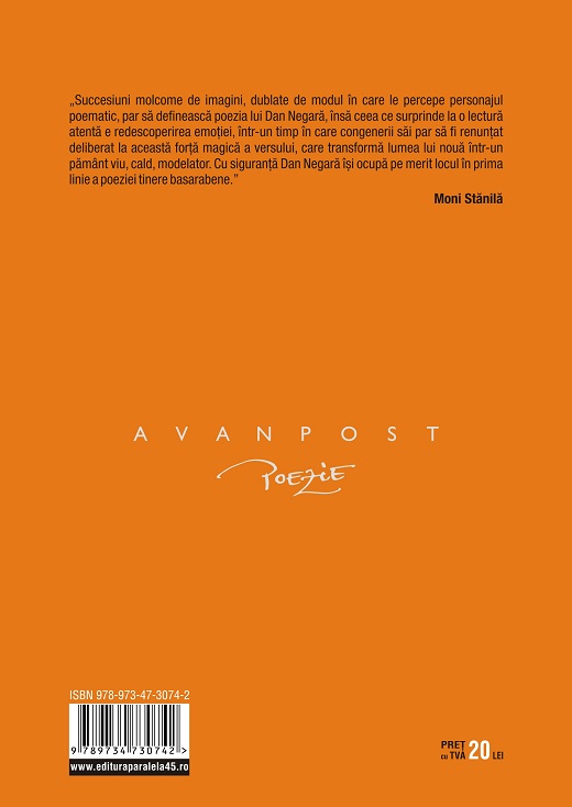 „Succesiuni molcome de imagini, dublate de modul în care le percepe personajul poematic, par să definească poezia lui Dan Negară, însă ceea ce surprinde la o lectură atentă e redescoperirea emoției, într-un timp în care congenerii săi par să fi renunțat deliberat la această forță magică a versului, care transformă lumea lui nouă într-un pământ viu, cald, modelator. Cu siguranță Dan Negară își ocupă pe merit locul în prima linie a poeziei tinere basarabene.”