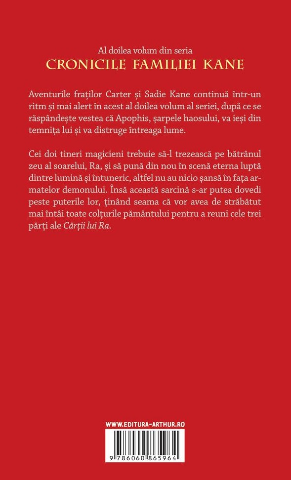 Aventurile fraților Carter și Sadie Kane continuă într-un ritm și mai alert în acest al doilea volum al seriei, după ce se răspândește vestea că Apophis, șarpele haosului, va ieși din temnița lui și va distruge întreaga lume.