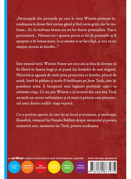 Cu o poveste aparte, în care își au locul și aventura, și meditația filozofică, romanul lui Natalie Babbitt despre miracolul și povara nemuririi este, asemenea lui Tuck, pentru totdeauna.