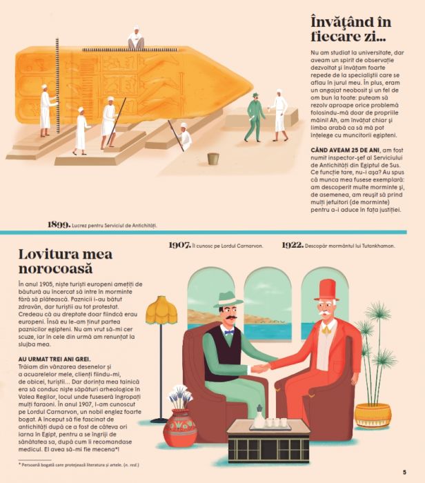 În urmă cu peste 3.350 de ani, Tutankhamon era cea mai importantă persoană din Egipt. Era un băiat de numai 9 ani, dar care domnea deja în fruntea unui mare imperiu. Deși a murit tânăr, astăzi este cel mai faimos faraon din istorie datorită găsirii mormântului său, plin de numeroase şi uimitoare comori. Vă invităm să retrăiți aventura acestei minunate descoperiri, alături de arheologul Howard Carter, și să aflaţi toate secretele egiptenilor antici. Cum se făcea o mumie? La ce foloseau piramidele? Ce sunt şi ce spun hieroglifele? Cine a găsit mormântul lui Tutankhamon, ce bogății conținea acesta și ce s-a întâmplat cu ele?