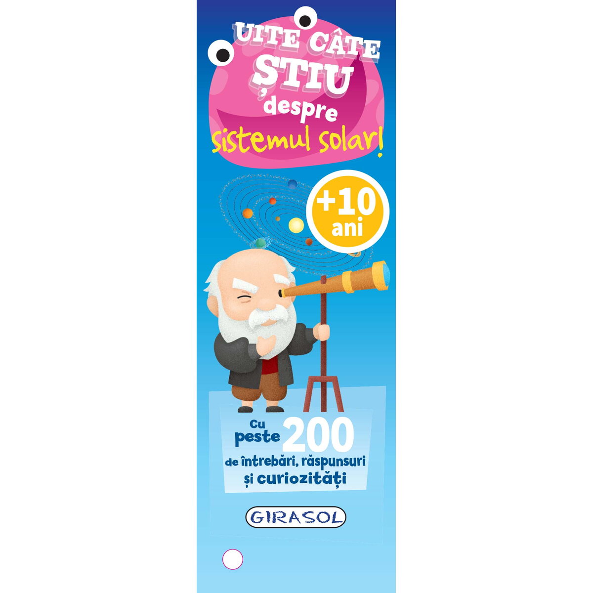 Pastreaza colectia completa "Uite cate stiu" a editurii Girasol in biblioteca ta, pentru a invata in modul cel mai distractiv cu putinta! Cati astronauti au pasit pe Luna? Cat de rece este planeta Neptun? Din ce este format soarele?