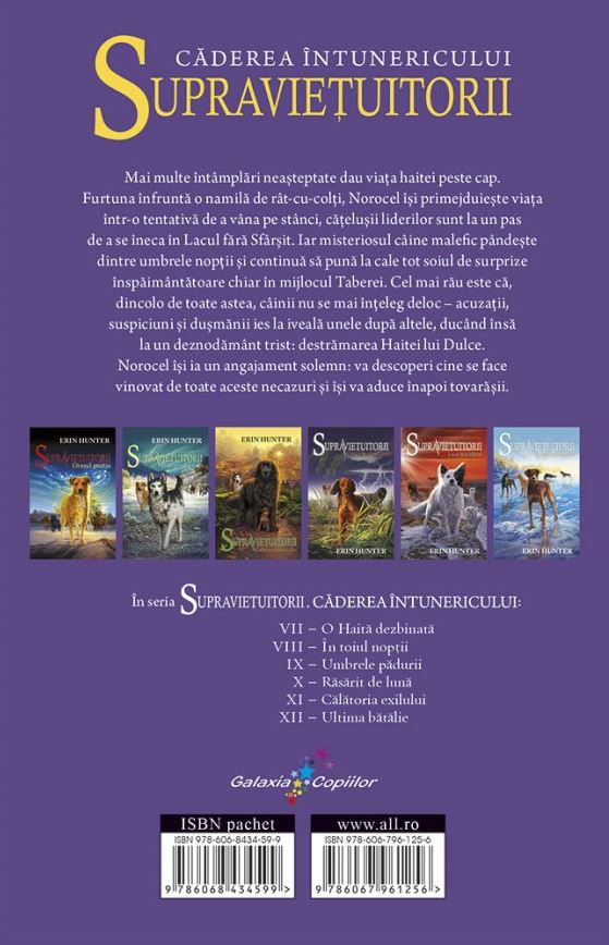 Totul a început cu Marele Mârâit, cutremurul devastator care a provocat dispariția oamenilor și i-a constrâns pe câini să se adapteze unor condiții dure de trai. Aceasta este povestea lui Norocel, un Câine Singuratic ale cărui abilități l-au adus în poziția de lider al Haitei Sălbatice, sub numele de Beta. Pe parcurs, destinul său se intersectează cu o mulțime de personaje cu care leagă alianțe, prietenii, sau, dimpotrivă, cu care intră conflicte tensionate. Veridicitatea interacțiunilor dintre câini, autenticitatea situațiilor descrise și fantezia de la baza întregii construcții literare au transformat „Supraviețuitorii” într-o nouă serie îndrăgită de cititorii „Pisicilor Războinice”.