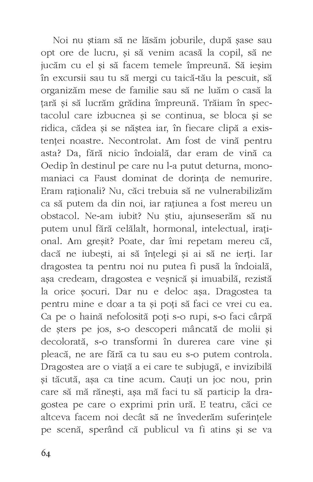 „Ce e cititul în nori dacă nu jocul liber al fanteziei, semnul imaginației puse la lucru? Alina Nelega ne introduce cu titlul romanului în fabulația de gradul doi cînd confruntă una din piesele de căpătîi ale teatrului cu ipoteza răsturnată a nebuniei personajului. Nu, fiul nu joacă nebunia, ci e bolnav, iar mama, care îl cunoaște dincolo de masca socială, se scufundă împreună cu el în purgatoriul suferinței psihice. Născut din stăpînirea mecanismelor dramaturgiei și din fidelitatea Alinei Nelega pentru scenă, romanul explorează în cercuri concentrice ficțiunea autonomă, edificată pe referințe la lumea teatrală autohtonă.” (Oana Cristea Grigorescu)