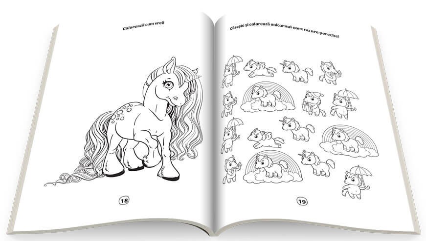 Descoperă lumea magică unicornilor! Colorează și rezolvă activitățile din această carte împreună cu personajele amuzante ca să-ți dezvolți atenția și imaginația! Aventura te așteaptă!