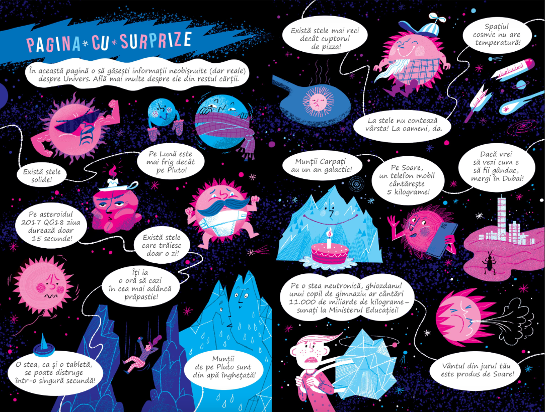 „Te invit să descoperi Universul exotic, adică lumea celor mai mari/mici/rapide/lente/fierbinți/reci/frumoase obiecte cosmice. Și dacă până acum nu ai aflat ce înseamnă cuvântul «exotic», îți spun eu: ieșit din comun, ciudat, aiurea, neobișnuit. Vom face o călătorie printre viteze, mărimi, vârste, adâncimi, înălțimi, locuri răcoroase și fierbinți. Înainte de această călătorie, te rog să citești cu atenție primul capitol, care îți prezintă tot ce trebuie să știi ca să poți înțelege restul cărții. Ai putea să recitești și Ghidul micului astronom, o carte pe al cărei autor nu îl cunosc deloc.“