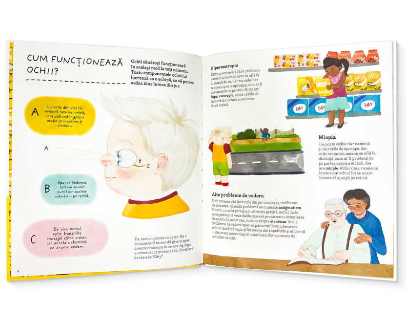 Citind această carte, vei găsi răspuns la toate întrebările pe care le ai – cum funcționează vederea, cum știe un doctor că ai probleme cu ochii, cine a inventat primii ochelari și cum arătau, ce posibilități vor avea ochelarii viitorului și nu doar. Află mai multe despre ochelarii tăi și poartă-i cu mândrie!