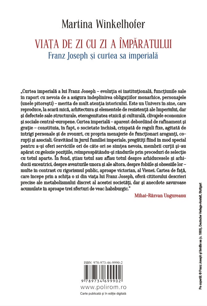 „Curtea imperială a lui Franz Joseph – evoluția ei instituțională, funcțiunile sale în raport cu nevoia de a asigura îndeplinirea obligațiilor monarhice, personajele (unele pitorești) – merita de mult atenția istoricului. Este un Univers în sine, care reproduce, la scară mică, arhitectura și elementele de rezistență ale Imperiului, dar și defectele sale structurale, eterogenitatea etnică și culturală, clivajele economice și sociale central-europene.