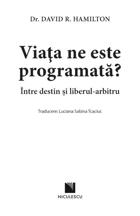 Acestea sunt întrebări pe care ni le punem cu toţii, dar este greu să trecem peste ipoteze sau instincte pentru a găsi răspunsuri categorice. în această carte inedită, dr. David R. Hamilton analizează dovezi ştiinţifice concrete pentru a ne face să înţelegem mai bine echilibrul dintre forţele destinului şi puterea liberului-arbitru.