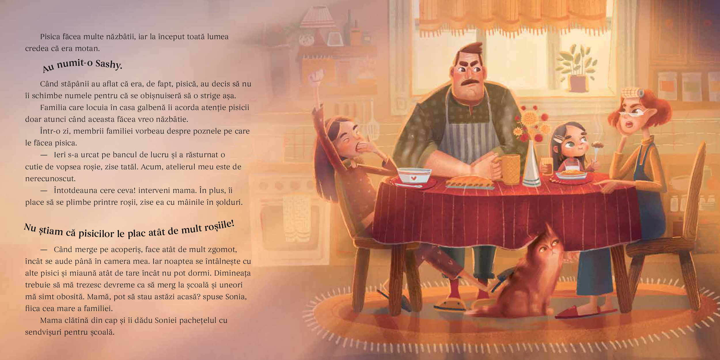 Sashy nu este o pisică obișnuită – fiecare zi în viața ei este o combinație de năzbâtii amuzante, escapade neașteptate și gesturi care surprind și înduioșează familia. Curajoasă, inventivă și mereu imprevizibilă, Sashy devine inima unei povești care celebrează prietenia, iubirea și micile bucurii ale vieții.