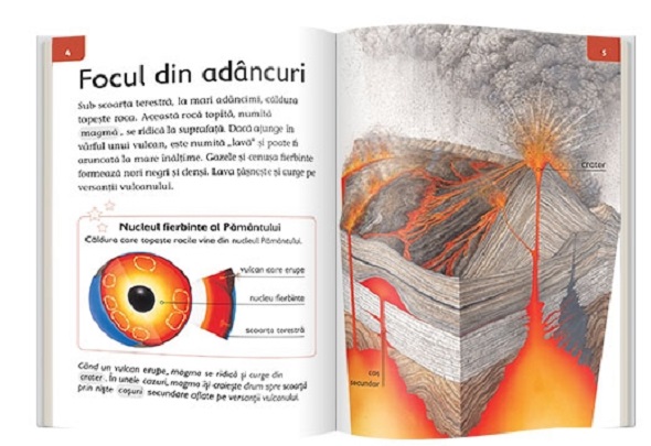 Sub scoarța Pământului se află un strat de rocă topită și ferbinte. Aceasta își poate croi drum spre suprafață, de unde erupe din vulcani. Lava curge de-a lungul vulcanilor, în timp ce gazele și cenușa aruncate în aer formează nori denși, în formă de ciupercă.