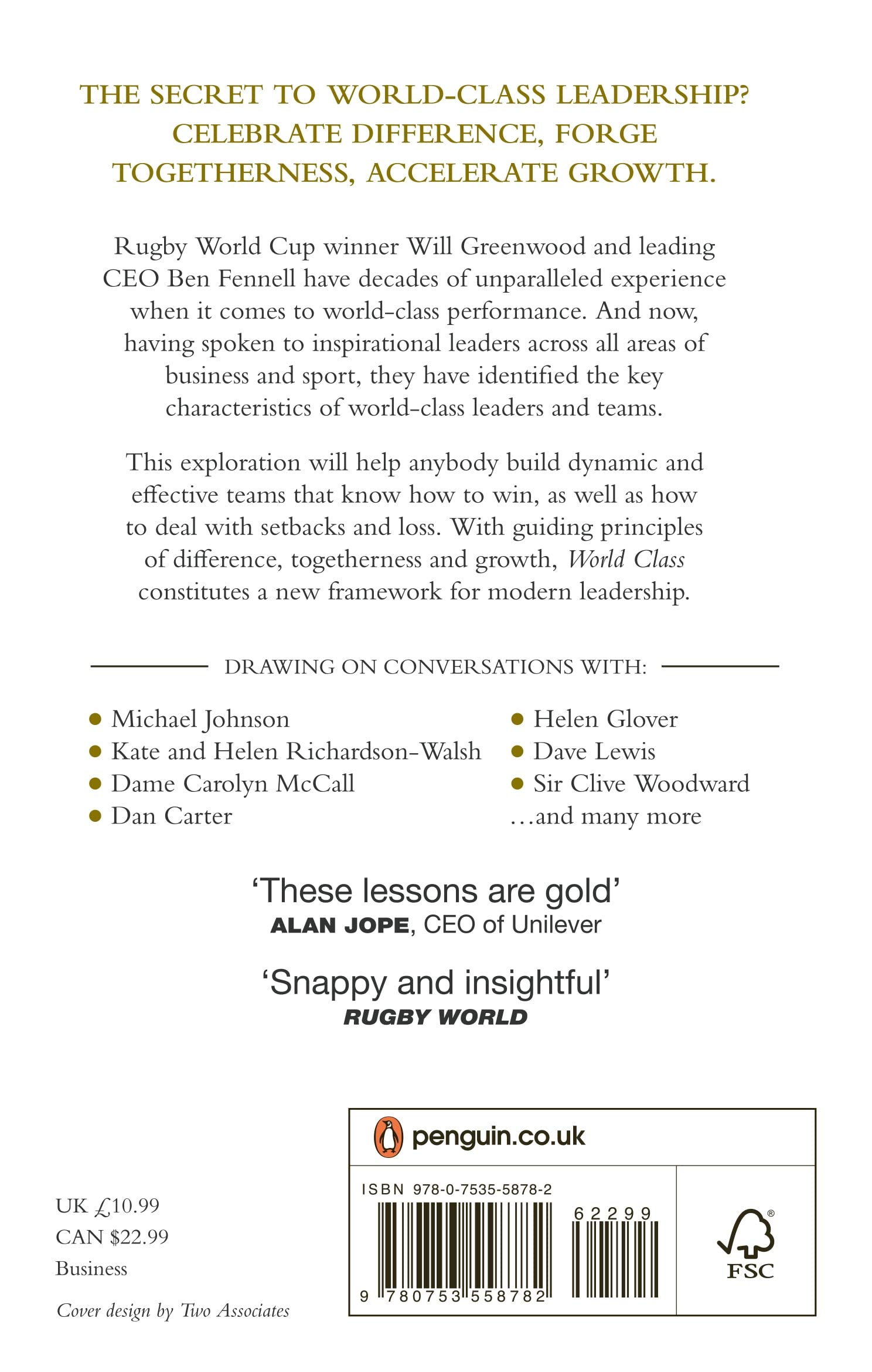 Having spoken to inspirational leaders across all areas of business and sport, including Michael Johnson, Tanni Grey-Thompson, Rio Ferdinand, Dame Carolyn McCall, Dave Lewis and Sir Clive Woodward, the authors have identified the key characteristics of world-class performance. These guiding principles of celebrating difference, forging togetherness and accelerating growth constitute a new framework for modern leadership.