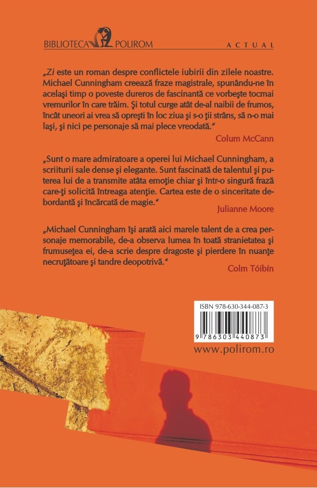 „Zi este un roman despre conflictele iubirii din zilele noastre. Michael Cunningham creează fraze magistrale, spunându-ne în acelaşi timp o poveste dureros de fascinantă ce vorbeşte tocmai vremurilor în care trăim. Şi totul curge atât de-al naibii de frumos, încât uneori ai vrea să opreşti în loc ziua şi s-o ţii strâns, să n-o mai laşi, şi nici pe personaje să mai plece vreodată.” (Colum McCann)