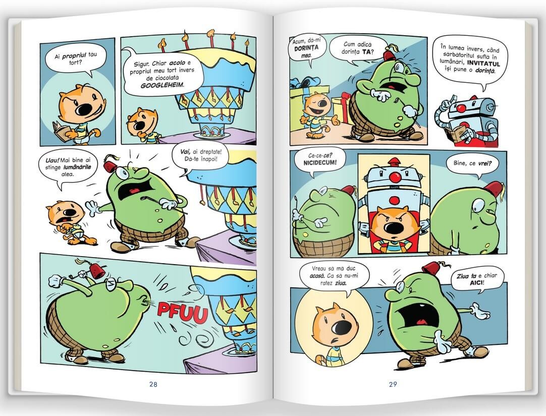 Cineva a furat ziua de naștere a lui Otto! Când Otto și prietenul lui robot, Tot, pornesc pe urmele hoțului, descoperă o lume cu susul în jos, unde șobolanii urmăresc pisicile și oamenii poartă lenjeria peste haine. Ca să-și recupereze cadourile, Otto trebuie să rezolve o mulțime de ghicitori sucite – dar cea mai mare încercare apare la finalul călătoriei. În această zi specială, va descoperi oare Otto ceva mult mai bun decât tortul sau cadourile?