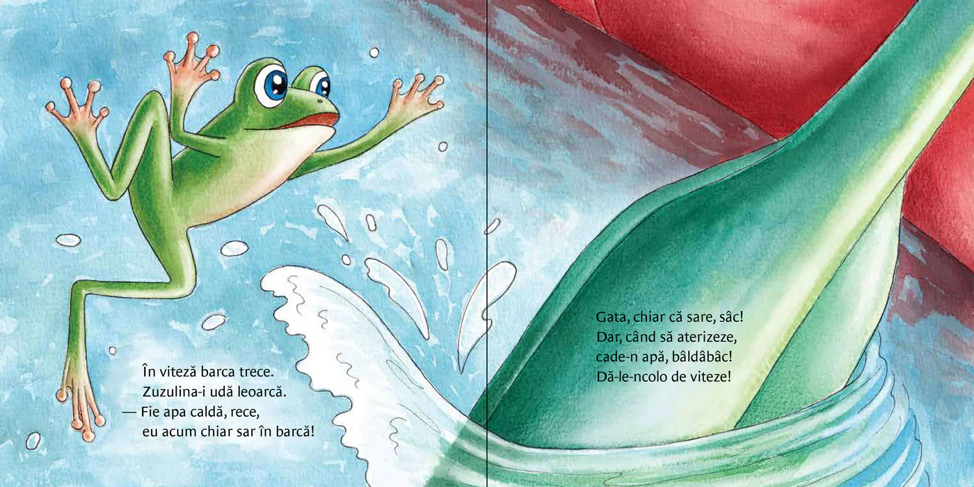 Broscuța Zuzulina se uită cu jind, de pe frunza ei de nufăr, la bărcile care trec.