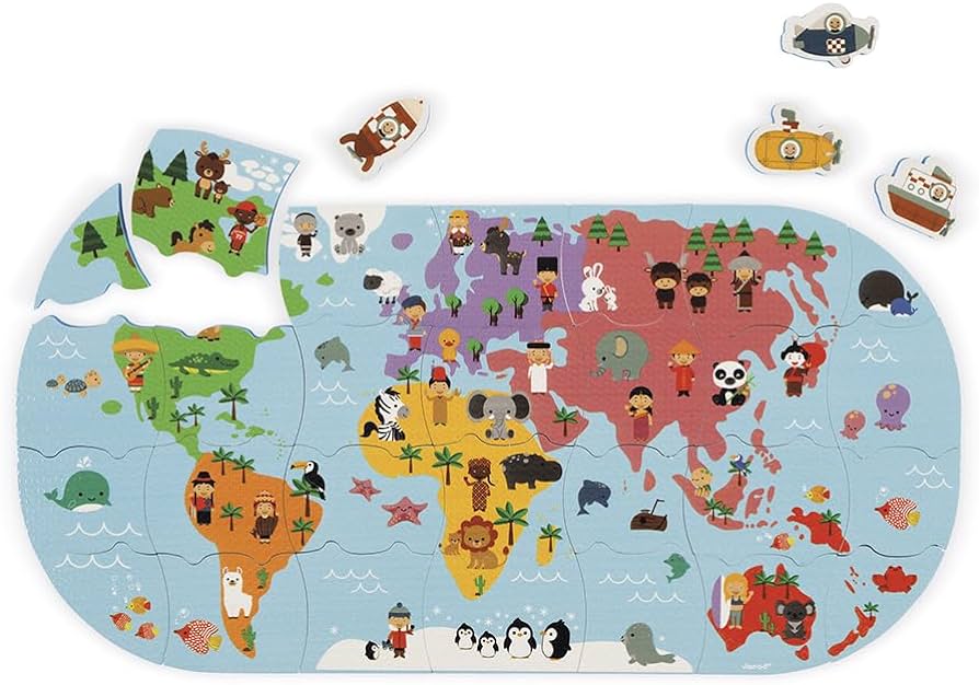 Această hartă a exploratorilor puzzle de baie, cu harta lumii și 4 vehicule este o jucărie de baie super distractivă. Descoperiți lumea cu cele 4 vehicule diferite: racheta, avionul, submarinul și barca. Scufundați piesele puzzle-ului în apă, astfel încât să plutească și să se lipească de peretele de faianță. Când ați terminat de jucat, păstrați puzzle-ul pentru baie în plasa de depozitare furnizată, pe care o agățați cu ventuze pe peretele băii.