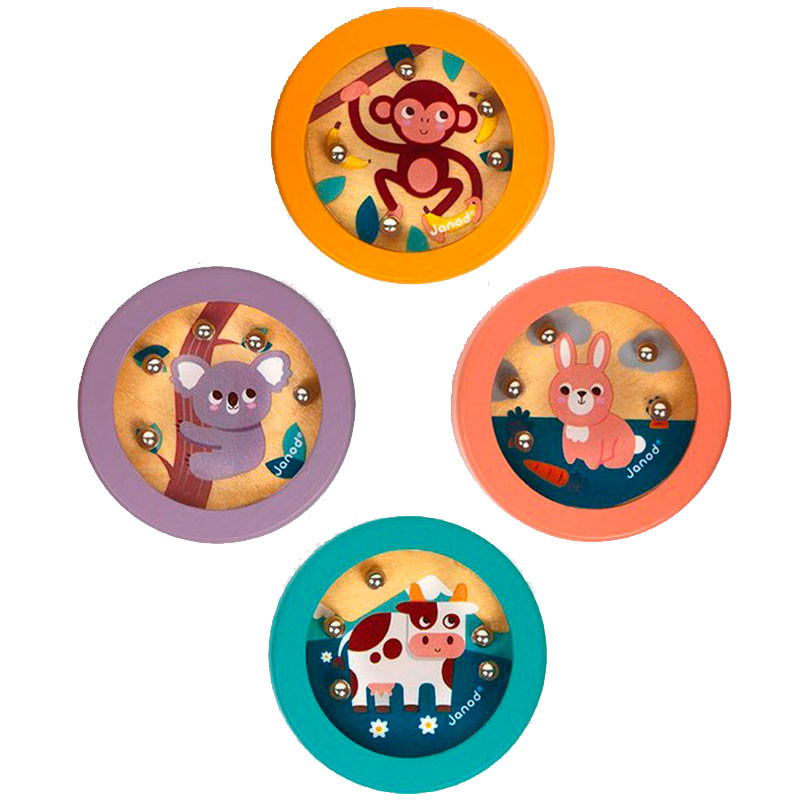 Un joc arcade cu bile din seria Pocket de jucării de buzunar al brandului francez JANOD este o jucărie originală care stimulează simțul văzului, concentrarea și motricitatea fină. Sarcina copilului este să așeze toate cele 5 bile în locurile (cavități) potrivite din imagine în spatele unui pahar de plastic sigur într-un cadru de lemn, ceea ce necesită perseverență și concentrare. Jucaria este disponibila in mai multe versiuni (cu rama portocalie si o maimuta in poza, o rama mov si o koala, o rama turcoaz si o vaca, si o rama de piersici si un iepure). Este usoara si la indemana. Va interesa fiecare copil.