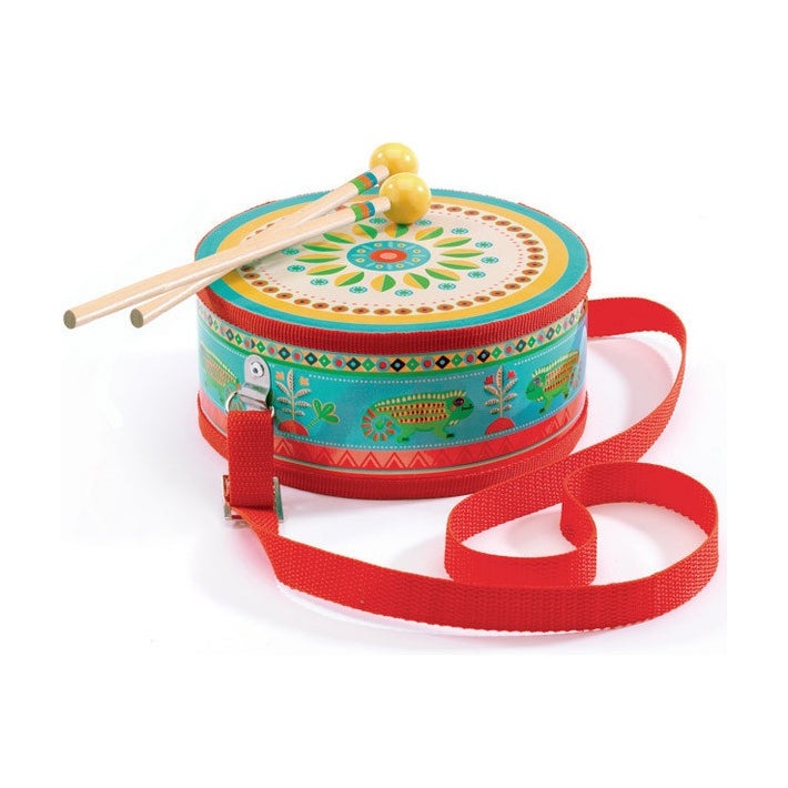 Toba confectionata din lemn, cu centura pentru a putea fi agătată pe umăr sau la gât, cu vopsele non-toxice. Jocul cu instrumente muzicale pentru copii contribuie la dezvoltarea abilităților tactile, a abilităților motrice fine. Varsta recomandata: + 2 ani.