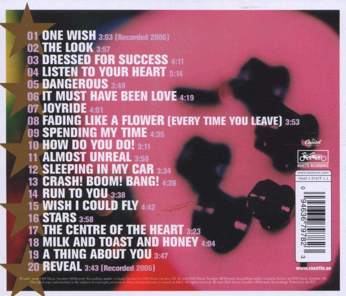 Roxette's Greatest Hits collection includes 20 of their hits including "It Must Have Been Love", "Listen to Your Heart" and many more. Also included in this collection is a brand new Roxette songs, "One Wish".