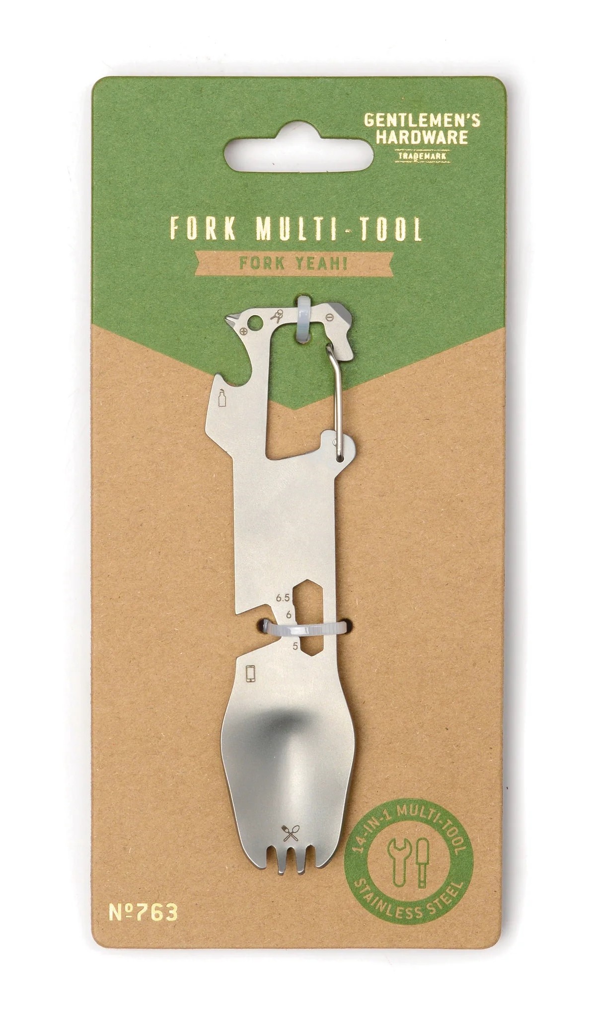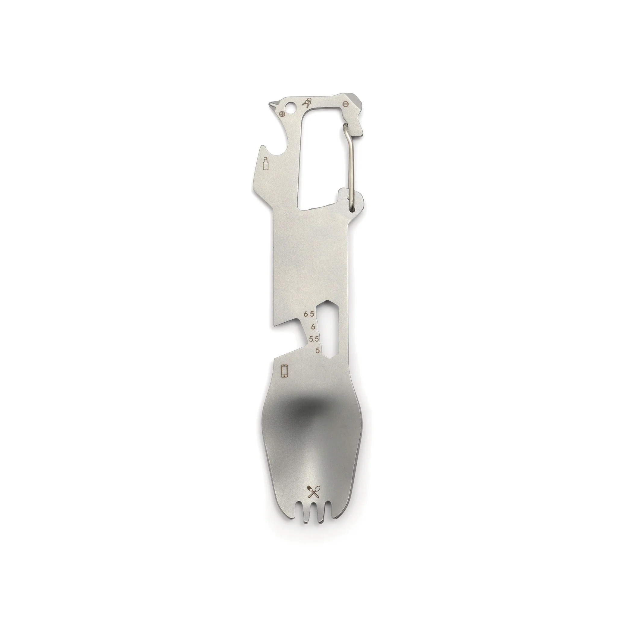 Faceți cunoștință cu instrumentul multifuncțional în formă de furculiță, un gadget uimitor cu 14 funcții. Folosiți-l ca furculiță, lingură, șurubelniță, suport pentru telefon, carabină, desfăcător de sticle și multe altele în aventuri în aer liber sau în călătorie!