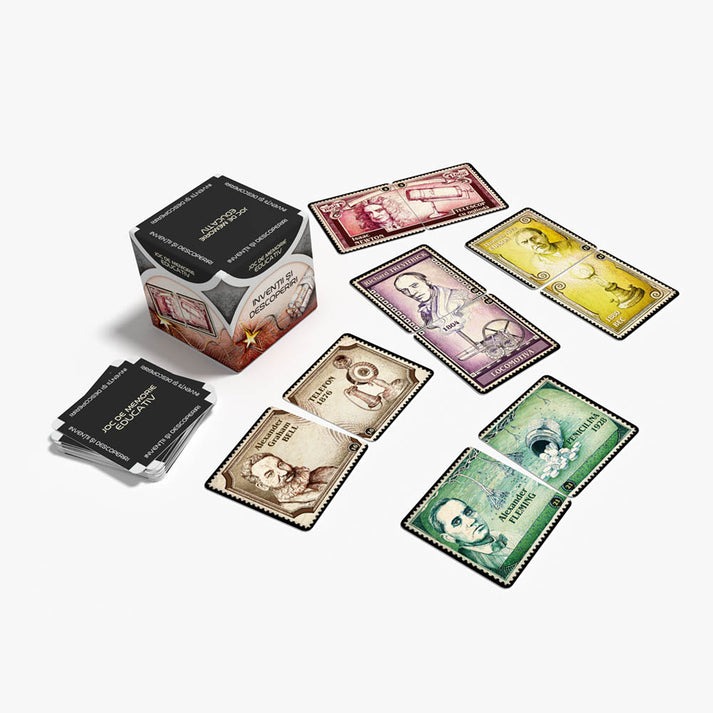 Cartonasele se amesteca si se aseaza cu fata in jos. Pe rand, jucatorii intorc cate doua cartonase. Daca acestea formeaza o pereche corecta (inventie – descriere sau inventator), jucatorul le pastreaza si continua jocul.